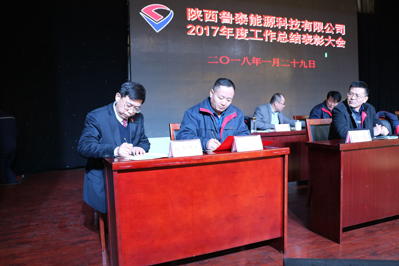 根据会议议程,楚旭峰分别与百吉、亿隆、海则庙项目部经理签订了2018年目标责任状,三个项目部经理做了表态发言。