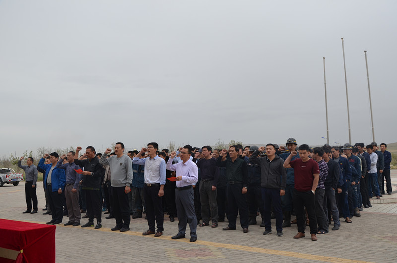 刘炳法宣布2018年度宁夏开云官方注册"安全生产月"活动正式启动。副总经理赵令金带领全体参会人员进行安全宣誓,总经理助理张峰主持启动仪式。