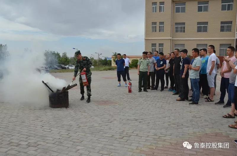 讲座结束后,消防官兵又为员工详细讲解了矿井在用的灭火器、消防水带等设备的使用,并在现场设立了燃烧盆,让员工进行灭火器实操演练。