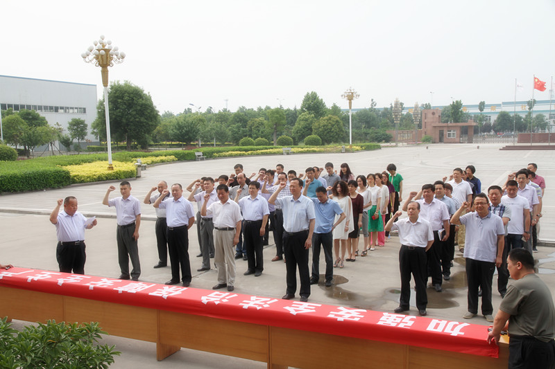 宣誓后,公司总经理李合军、副总经理薛培华、关延忠带领公司机关全体员工在"安全生产月"的横幅上签上自己的名字。一个简单的签名,不仅签下了对企业安全发展的承诺,也签下了安全工作从我做起的决心和意志。