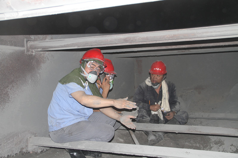由于7#锅炉空预器存在缺陷及省煤器上集箱出水管焊口裂纹,管道内水泄漏到烟道内,烟气中的灰尘粘度增大,在省煤器、空预器上表面及内部沉积了大约30m3的积灰,在停炉检修期间,热电公司为能保质保量按期顺利完成检修任务,领导干部切实履职尽责,身先士卒。组织后勤部室人员深入一线体验生活,协助锅炉车间清理炉积灰,副总经理荆明光、总经理助理时贞坤、副总工程师戴传华不怕脏、不怕累,亲自进入锅炉水平烟道内部,在狭小的空间内同一线职工共同劳动,并现场研究方案,充分体现了干群融合一体的良好精神面貌,为职工树立了榜样,带动了职工的干劲,体现了热电公司全员较强的执行力和战斗力。经过热电公司全体上下齐努力,顺利完成了全部上表面的积灰清理工作。