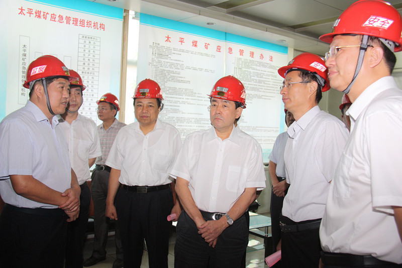 马平昌来到太平煤矿,走进调度指挥中心,了解太平煤矿生产条件、安全措施、应急预案和膏体充填开采情况,检查领导干部值班带班情况,询问当班下井人员情况,通过监控系统查看了井下避难硐室,详细询问避难硐室建设、装备及使用情况。到副井上井口查看了太平煤矿特色"安全生产警示圆"及管理人员带班下井、"明星区队"评比、"A级班组"等公示情况。