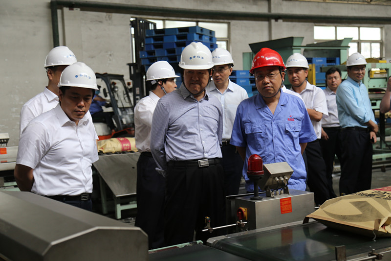 张胜明一行先后深入到调度指挥中心、包装车间等生产一线进行调研,观看了安全视频,查看了天气预报和消防应急救援设,听取申玉海关于公司安全生产情况的汇报,详细了解公司安全生产、产品销售、原产料供应以及经济运行情况。