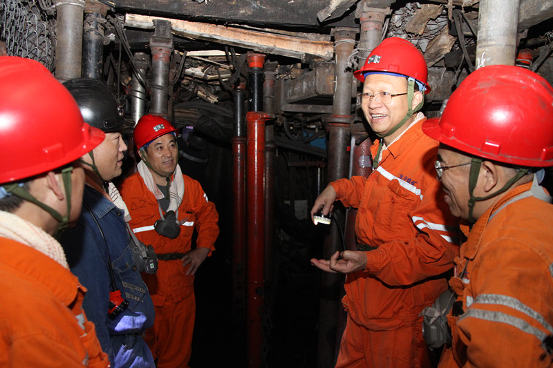 上午九时许,李合军一行到矿后未作停留,立即换上工作服下井,深入6F303工作面检查指导工作。在途中,汤保民简要汇报了近期企业安全管理、生产经营等工作。进入工作面后,李合军与采一工区区长陈宗桥进行了交流。李合军指出,从现在到年底还有一个多月的时间,要高度重视安全生产工作,要加强现场安全管理,严格执行"33320"安全管理模式,严格执行各项安全管理制度,严格落实各项安全措施,提高现场安全质量化水平,确保实现安全生产。李合军询问了该工区党的十九大精神学习情况。他指出,十九大报告提出的新时代、新思想、新矛盾、新征程等一系列重要论述,是我们党迈进新时代、开启新征程、引领复兴、兴党强国的政治宣言和行动指南。他强调,各党支部要有计划、分步骤地抓好落实,推动党的十九大精神进区队、进班组,营造良好的舆论宣传氛围,确保党的十九大精神覆盖到每一名党员干部和职工群众。